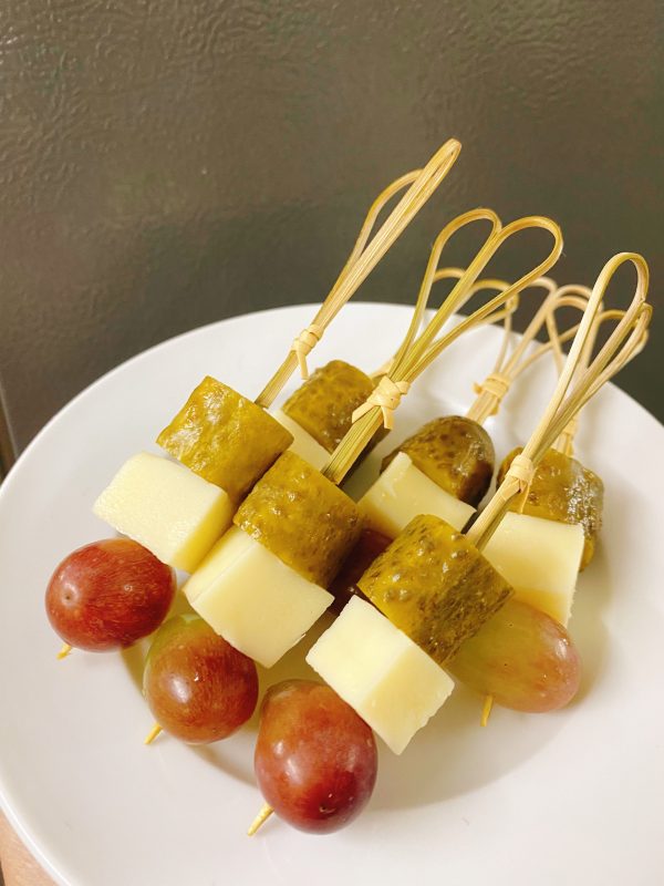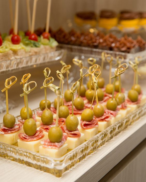 | 6 | Quả oliu, dưa chuột muối | 6 | Bánh Biscuit, hạt điều | 6 | Canape lườn ngỗng dưa leo |