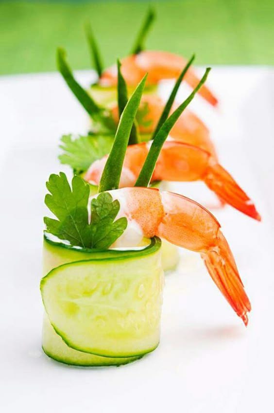 | 5 | Canape lườn ngỗng dưa leo | 5 | Canape tôm nướng | ||